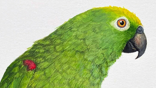 Skylark Artist Amanda Gosse shares stories of her pet green parrot, Maestro.